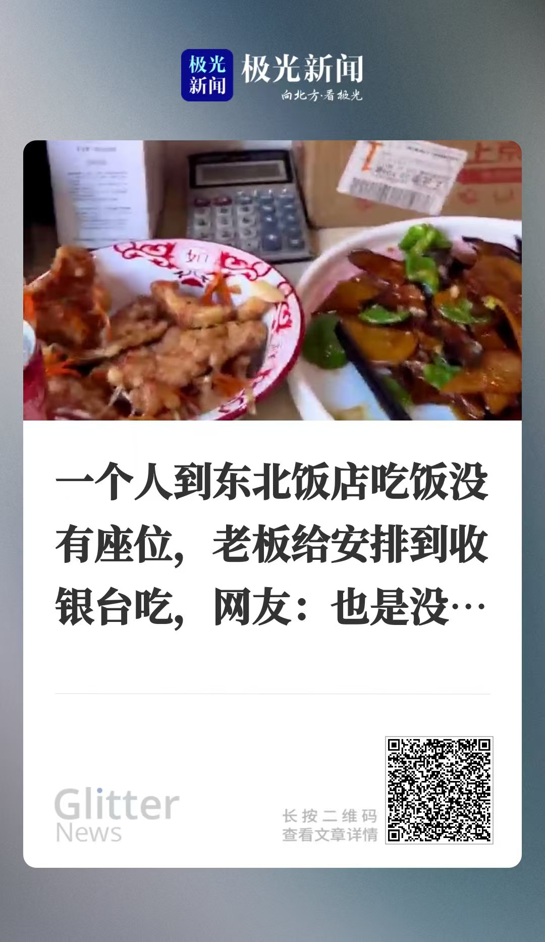 一个人到东北饭店吃饭没有座位,老板给安排到收银...