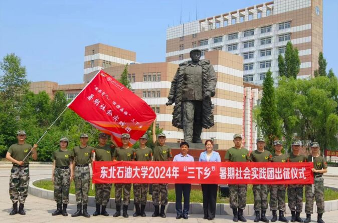 7月24日,实践团在东北石油大学铁人雕像前举行了出征仪式。东北石油大学团委书记施洋授旗并表示,“三下乡”是青年学生投身社会实践,服务基层一线的重要平台,实践团成员要发扬东油学子的优良作风,积极服务社会。实践团队长陶国际发言并带领团队成员发表出征誓言。指导教师吴波宣布铁人国旗护卫队“国旗育魂,回馈桑梓”实践团正式出征。
