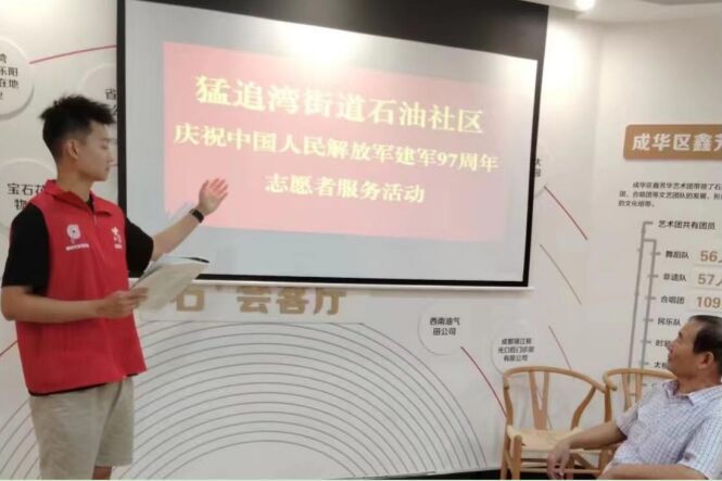 7月28日至8月3日,实践团成员潘山参加四川省成都市成华区猛追湾街道石油社区的志愿服务活动,以实际行动诠释当代大学生的责任与担当。在为期一周的活动中,潘山投身垃圾分类宣传活动,提升社区居民的环保意识。作为退役士兵,潘山在建军节前夕开展爱国主义宣讲,激发了社区群众的爱国热情。
