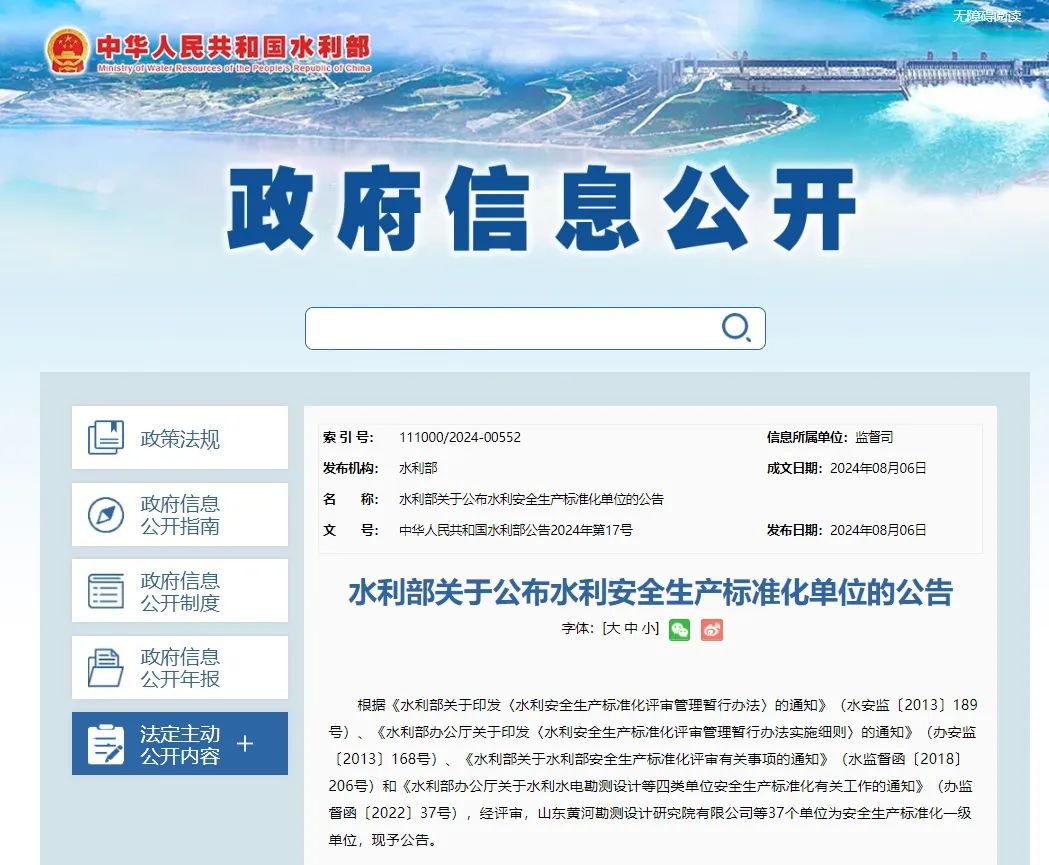 近日,国家水利部网站公布水利安全生产标准化单位名单,经评审,共有37个单位为安全生产标准化一级单位。其中,黑龙江1家单位入选。