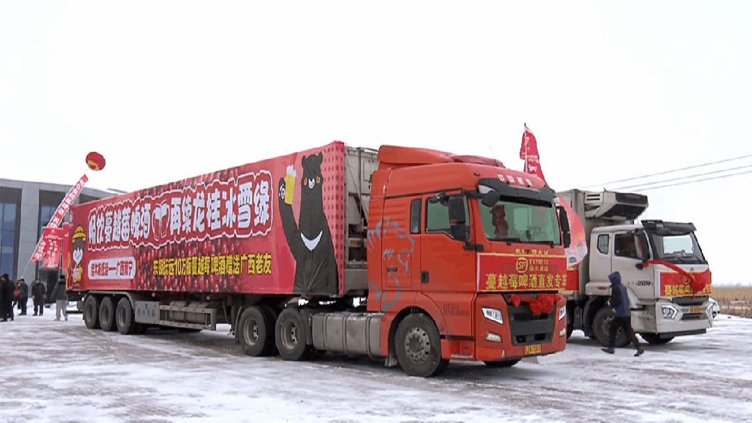 遇见冰雪遇见暖,不负美景不负情。在抚远市蔓越莓太空育种中心,三辆大货车里面装载的是满满的10万瓶蔓越莓精酿啤酒,他们将会跨越4300多公里再次奔赴广西,为广西的老友们送去一份来自黑龙江的情谊。从抚远的银装素裹到广西的绿意盎然,一份从“舌尖”到“心间”的温暖之旅即将启程!