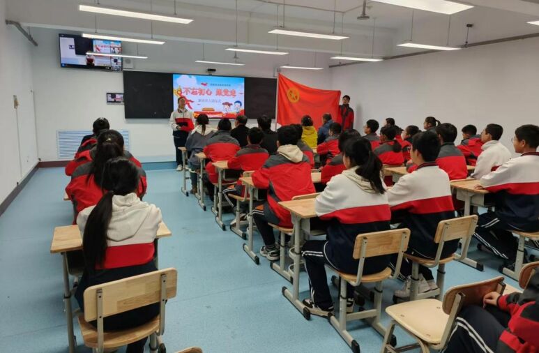 入团仪式在庄严的国歌声中拉开序幕,全体师生齐唱国歌,表达对祖国的无限热爱与崇高敬意。随后,宣读了新团员名单,并为新团员佩戴了团徽。新团员们右手握拳,面向团旗进行庄严宣誓,一句句誓词铿锵有力,表达了共青团员对中国共产党和中国共青团的忠诚与热爱,对共产主义信仰的执着追求。