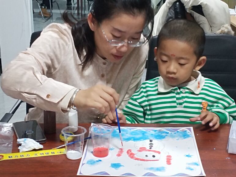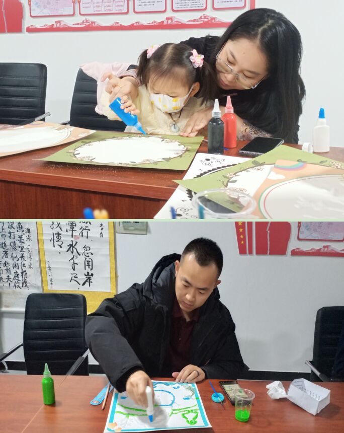 活动现场气氛热烈非凡。参与者们满怀热情地投入盐画创作中,他们用胶水精心勾勒出雪花、雪人等作品。随后撒上盐粒,盐与胶水奇妙反应,形成独特纹理。最后,用缤纷颜料上色,一幅幅栩栩如生的冰雪亚冬盐画作品诞生。