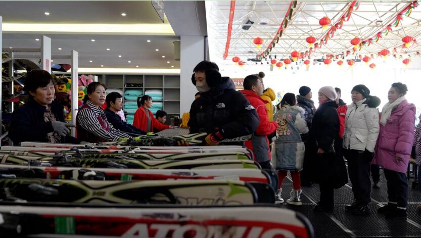 在铁力日月峡滑雪场,参加“惠职工”活动的滑雪爱好者们正在挑选雪具,准备畅享滑雪乐趣。凭借工会发放的滑雪卡,职工们个人仅需花费50元,即可在滑雪场畅玩一天,这让很多喜爱冰雪运动的职工们十分欣喜。