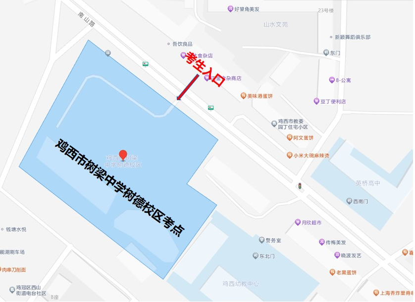 考点为鸡西市树梁中学树德校区的考生可乘坐14路、189路到原十九中站下车。