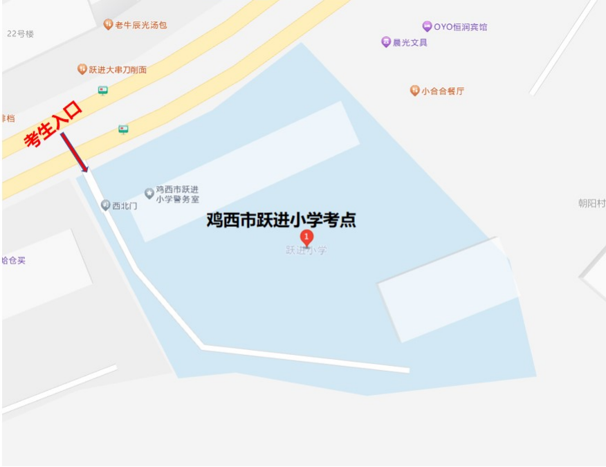 考点为鸡西市跃进小学的考生可乘坐6路、15路、28路到跃进小学站下车。