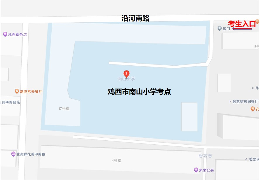 考点为鸡西市园丁小学的考生可乘坐17路到园丁小学站下车。