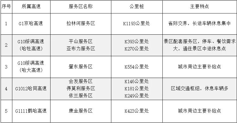 黑龙江省高速路网服务区概况概览: