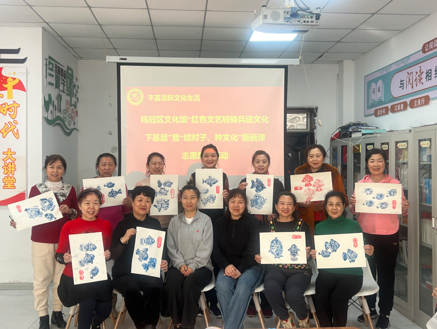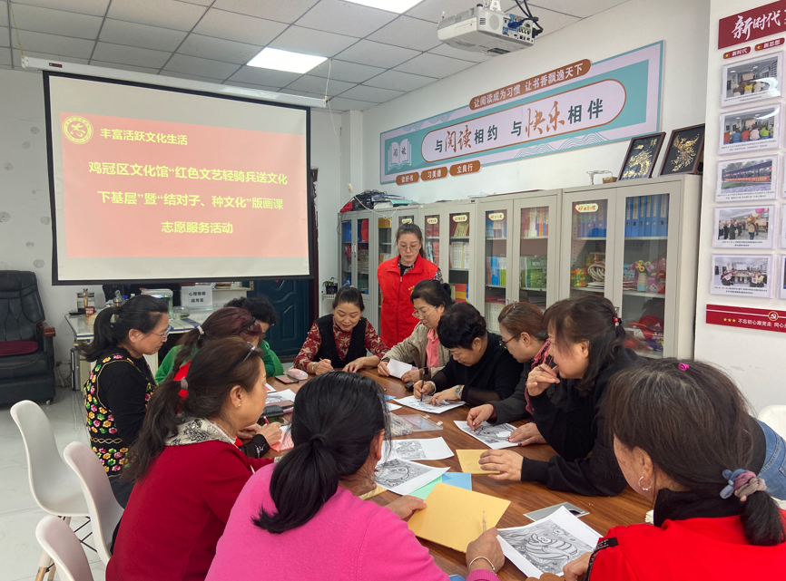 为深入贯彻落实党的二十大精神,进一步丰富基层群众文化生活,促进文化惠民工程深入开展,近日,鸡西市鸡冠区文化馆组织“红色文艺轻骑兵”志愿服务队走进向阳街道东山社区,开展了一场别开生面的“结对子种文化”版画课志愿服务活动。
