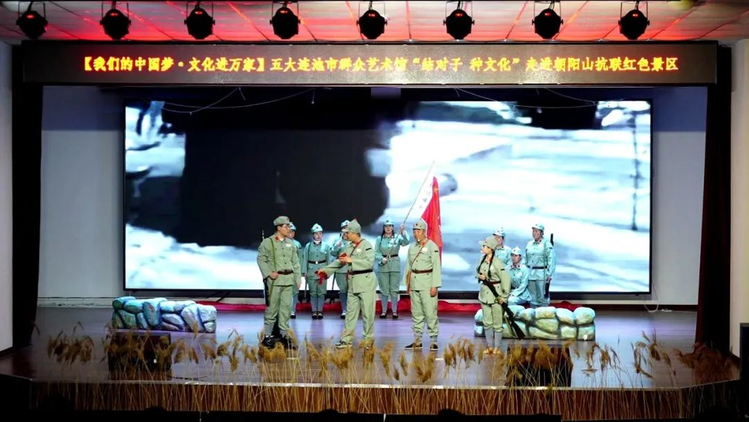 近日,五大连池市群众艺术馆开展“结对子种文化”活动,走进朝阳山抗联红色景区。