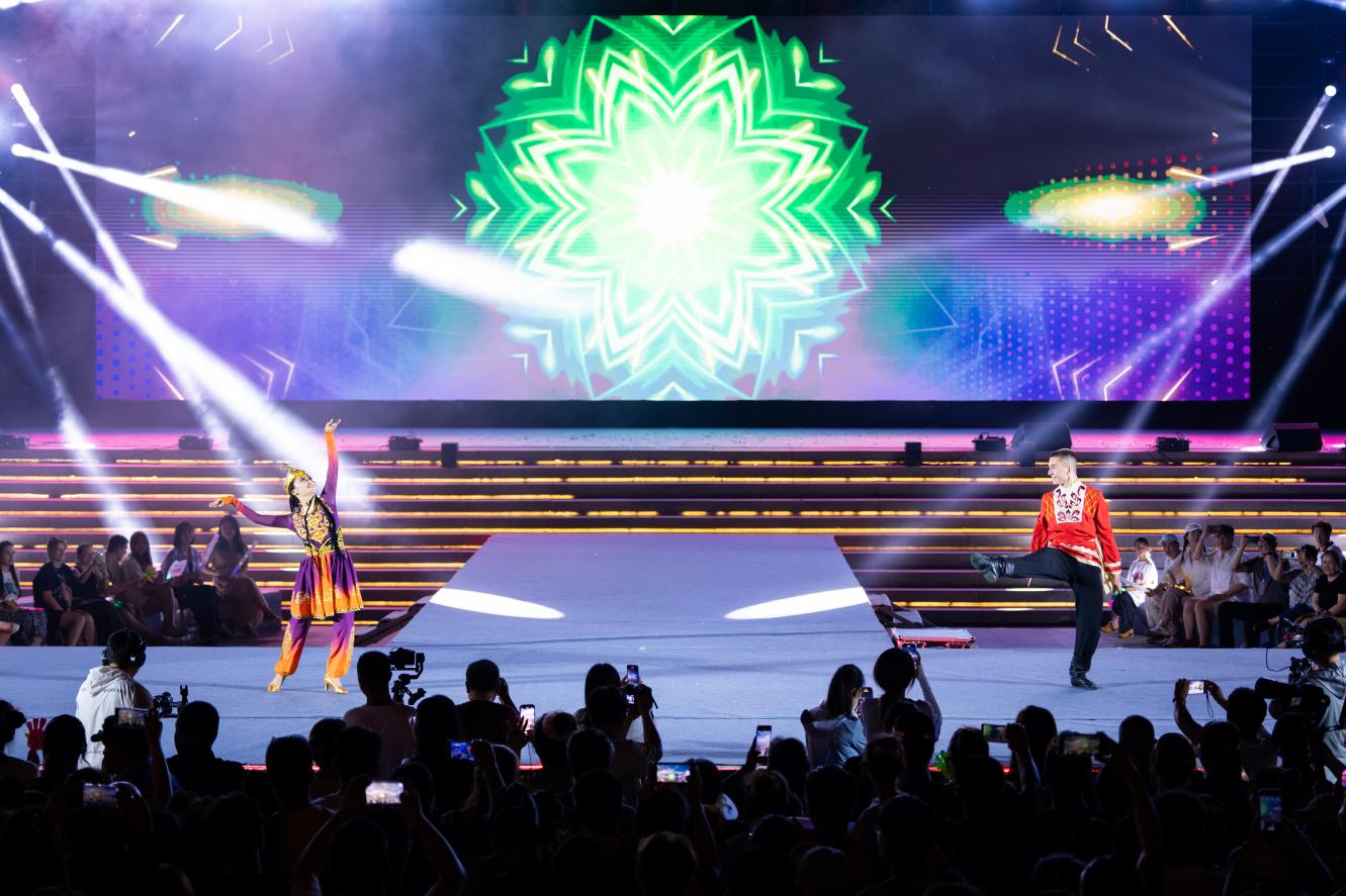 作为国家文旅部“2025中俄文化大集”的重要活动,首场揭幕战特邀省内知名主持人袁哲倾情助阵。此次大赛打破专业评审壁垒,创新构建多元评审体系,由55人跨国评审团联合现场观众、直播用户通过“线下投票+线上小程序投票”进行投票综合评定,成功实现了从“舞台评审”到“全民参与”的华丽转身,强化“舞动正燃相聚狂欢”的活动氛围。
