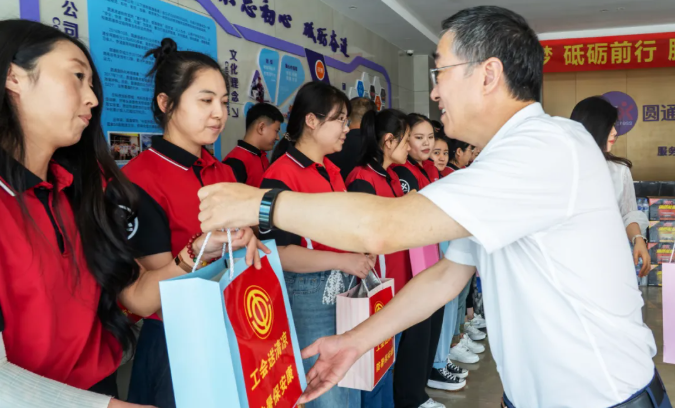 慰问组一行先后来到哈尔滨交通集团公共交通有限公司、哈尔滨地铁集团有限公司、黑龙江圆通速递有限公司,与坚守一线的职工代表亲切交流,向炎炎夏日中辛勤工作的劳动者致以诚挚敬意,并为他们送上防暑降温物资。