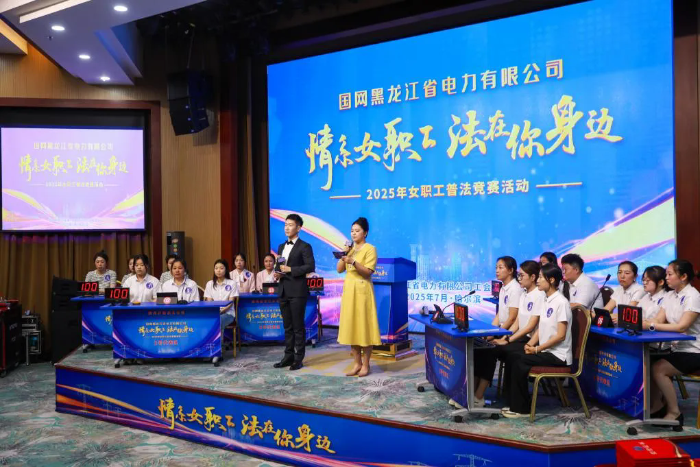 近日,国网黑龙江电力举办了“情系女职工?法在你身边”2025年普法竞赛活动。本次活动分为初赛和复赛两个阶段。初赛阶段采取线上答题方式,参与人数超3300人。复赛竞赛阶段共有来自29家单位的87名女职工参赛,经过激烈的角逐,6支代表队脱颖而出,晋级团体决赛。最终,国网哈尔滨公司代表队凭借出色的表现荣获团体一等奖,国网七台河公司、国网黑龙江水电总厂获二等奖,国网伊春公司、国网宝泉岭公司、国网绥化公司获三等奖。
