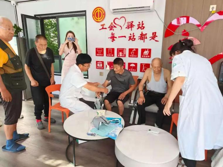 8月1日,抚远市总工会依托人民广场工会驿站,为新业态职工开展了义诊活动。此次活动依托省总工会提供的远程医疗设备,根据仪器测量结果,让合作医院医生为职工在线诊疗。同时还邀请了社区医院医生现场坐诊,全方位为外卖骑手、养老护理员等新业态职工和环卫工人等户外劳动者的健康保驾护航。活动还为耀阳养老院的老人进行了体检,向新业态职工开展了有针对性的法律宣传,让大家真切地感到工会组织的温暖和关爱。
