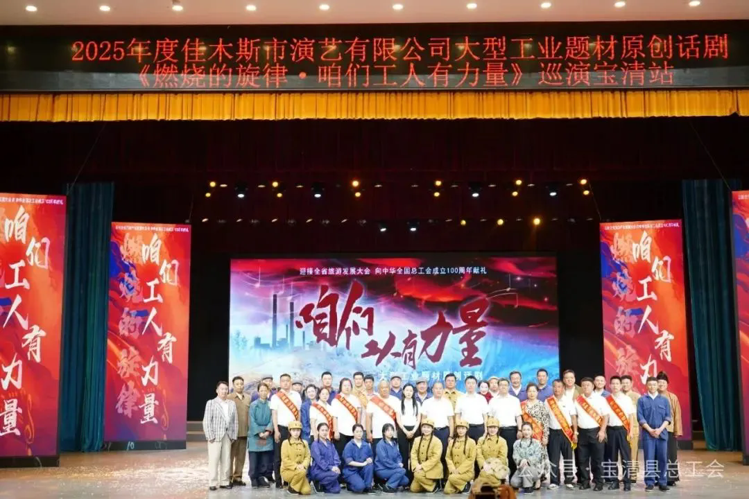 为庆祝中华全国总工会成立100周年,传承红色工运基因,近日,由黑龙江省总工会出品的大型工业题材原创话剧《燃烧的旋律·咱们工人有力量》在双鸭山市、宝清县上演。