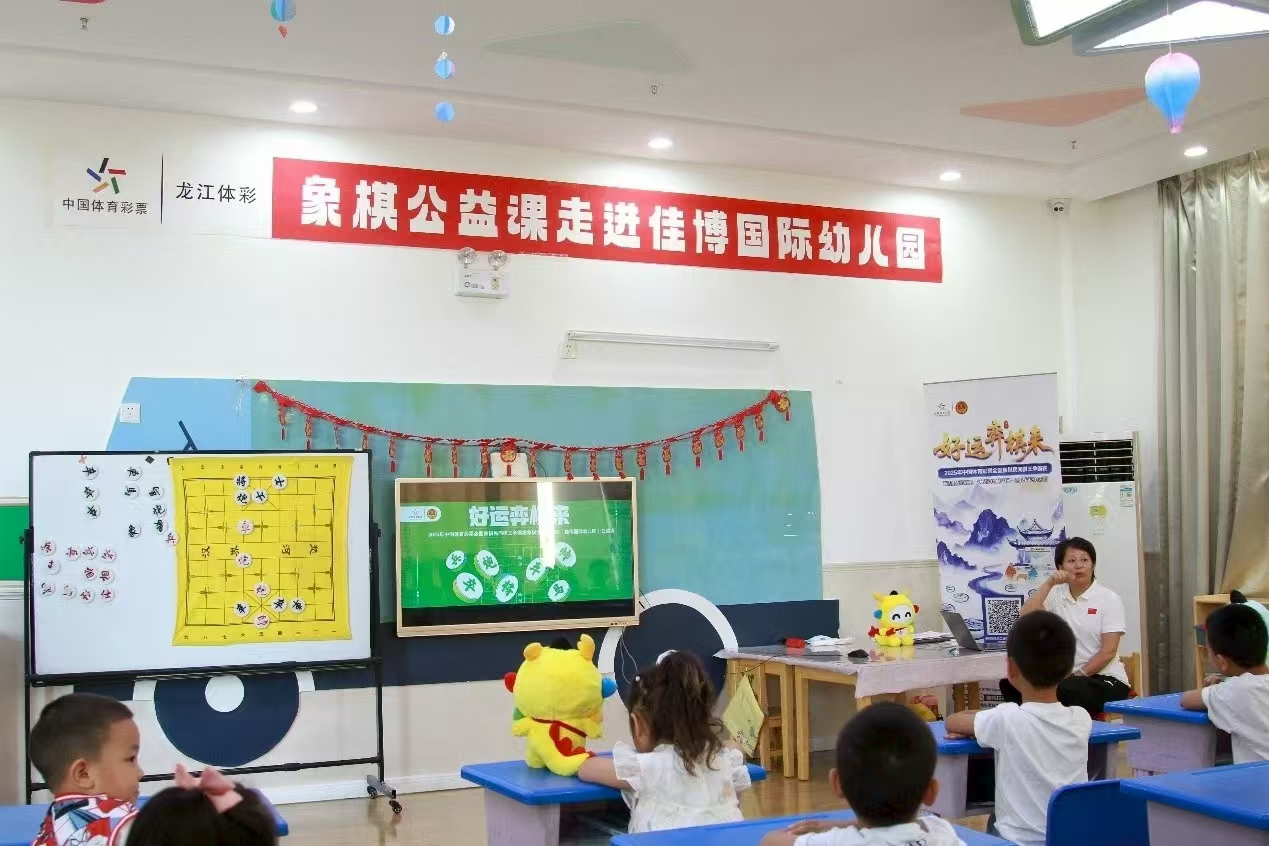 楚河汉界藏玄机,车马炮卒论乾坤。2025年8月14日14时30分,佳木斯市佳博国际教室内暖意融融,一场由龙江体彩全力支持的别开生面的象棋公益课在此拉开帷幕。作为2025年中国体育彩票全国象棋民间棋王争霸赛(黑龙江赛区)的重要配套活动,本次“快乐操场”公益支教活动由龙江体彩联合黑龙江省棋牌协会精心组织,特邀象棋国家大师张梅走进校园,为40名幼儿园学生带来了一堂充满乐趣的象棋启蒙课,让孩子们在楚河汉界间感受传统文化的魅力,也让龙江体彩公益的温暖触角延伸至校园深处。