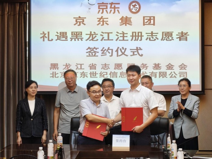东北网8月22日讯(记者 葛金鑫)8月22日,京东集团与黑龙江省志愿服务基金会在哈尔滨市签署礼遇黑龙江注册志愿者战略合作协议。京东零售政企业务副总裁、中共黑龙江省委社会工作部分管负责同志出席签约仪式并分别致辞。省委社会工作部、省商务厅、哈尔滨市委社会工作部、京东集团总部及黑龙江分公司、黑龙江省志愿服务基金会有关领导、相关部门(处室)负责同志及哈尔滨市志愿者代表参加签约仪式。