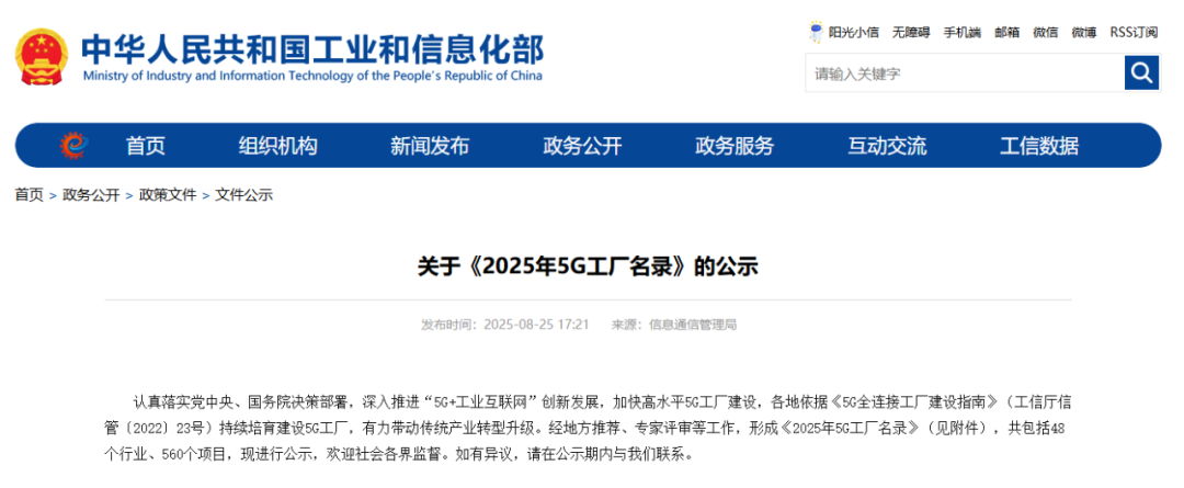 近日,工信部网站发布关于《2025年5G工厂名录》的公示。经地方推荐、专家评审等工作,形成《2025年5G工厂名录》,共包括48个行业、560个项目。其中,黑龙江9个项目拟入选。