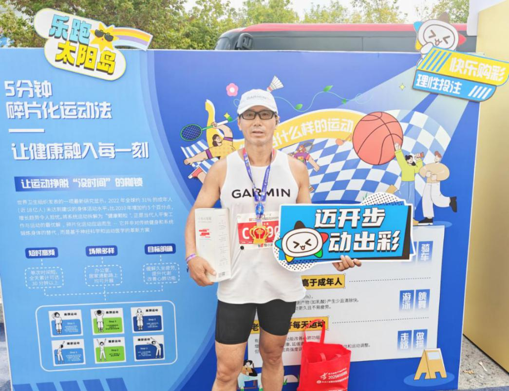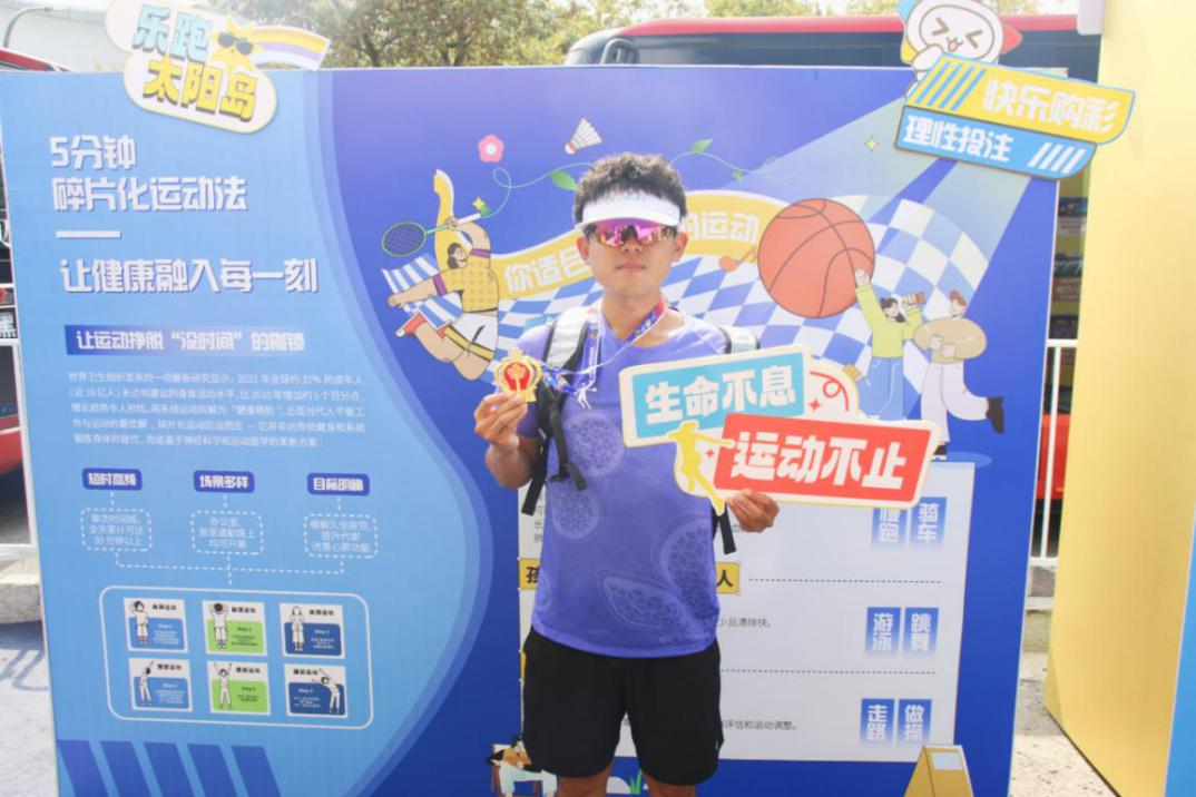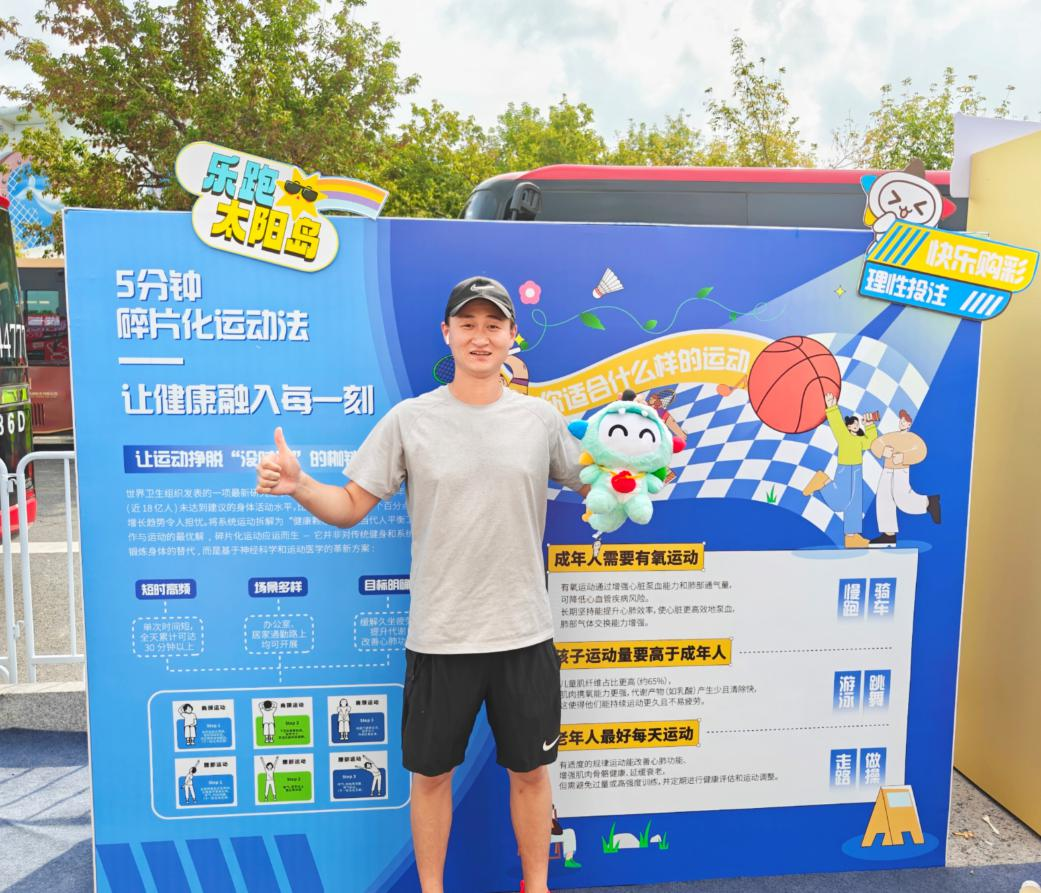 而在半马、全马终点的展位上,我们更能看到龙江体彩作为“社会价值共建者”的自觉。健康知识展板为跑者送上科学运动指南,反诈宣传板块用案例筑起安全防线,理性购彩立牌则温和提醒着娱乐的边界。这些看似与“彩票”关联不深的内容,恰恰彰显了体彩的社会责任底色:跑者在跳远游戏中舒展筋骨,恰好也与“迈开步”的主题形成巧妙呼应;参与者在迷你高尔夫推杆中放松神经,他们接收到的不仅是运动的快乐,更有体彩传递的健康生活理念。这种润物细无声的传播,让公益与责任的种子在轻松的氛围中自然生长。