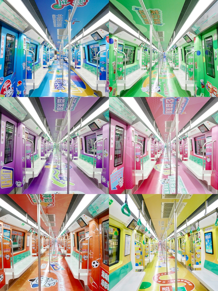 宝子们有没有发现最近坐2 号线时眼前一亮?蓝绿紫粉橙黄六色主题车厢美到犯规!