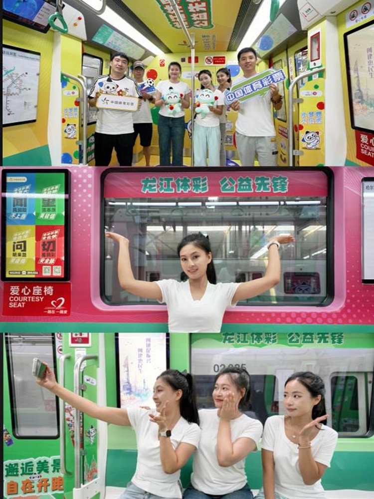 仔细看会发现,贴纸上全是哈尔滨的熟悉身影——圣索菲亚教堂、哈尔滨站…体彩吉祥物乐小星融入其中,让车厢的设计感拉满!每个车厢都有不同的主题,简直太炫了!