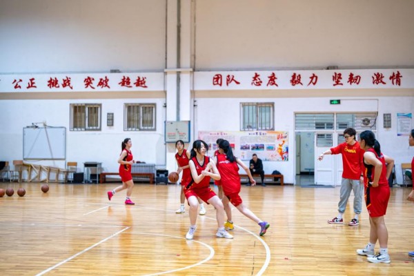 参训学生很快融入氛围,从最初的谨慎尝试到主动参与互动,逐渐在跑动传球中找到自信。女篮小将们专注投入,汗水浸湿球衣仍反复练习投篮动作,篮球撞击地板的砰砰声与命中篮筐的唰网声此起彼伏,成为球馆内最动听的旋律。分组对抗时,学生们积极运用刚学到的战术,配合愈发默契,热烈的氛围感染着在场每一个人。