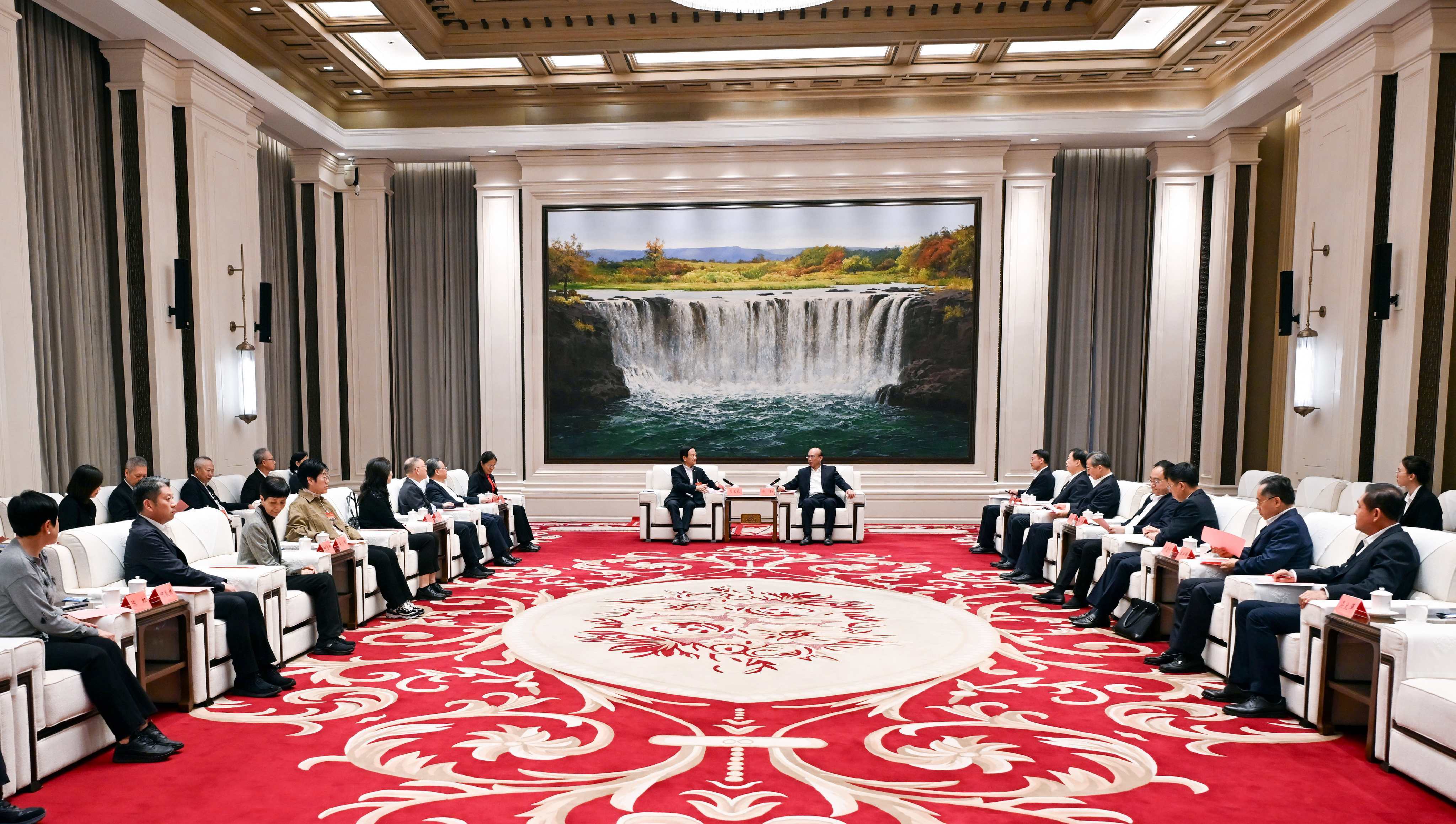 23日,省委书记、省人大常委会主任许勤在哈尔滨会见以中国侨联副主席、澳门地区中国和平统一促进会会长刘艺良为团长的澳门特别行政区第十四届全国人大代表视察团一行。