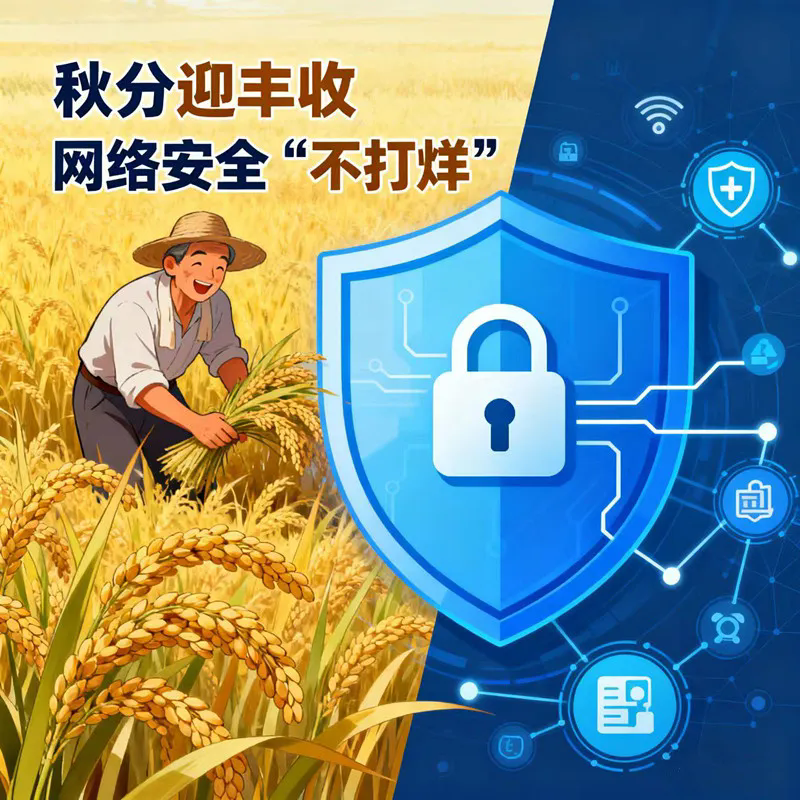 秋分至,稻浪翻滚、瓜果飘香,人间处处是丰收的喜悦。当我们忙着盘点生活里的“硕果”时,网络世界的“安全防线”却容不得半分松懈——不法分子不会因季节更迭停下脚步,信息泄露风险也不会随秋风消散。在这个收获与守护并行的时节,网络安全必须“全年无休、时刻在线”,才能守住我们的数字财产与个人隐私,让丰收的喜悦不被风险打扰。