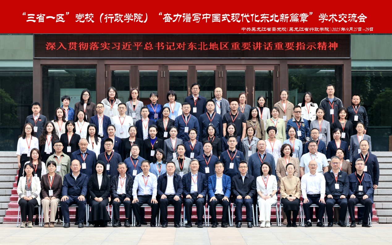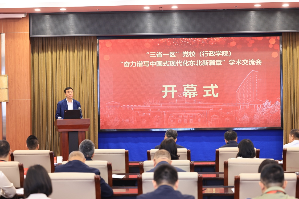 为深入贯彻落实习近平新时代中国特色社会主义思想,深度研究宣传阐释习近平总书记对东北地区系列重要讲话重要指示精神,更好发挥“三省一区”党校(行政学院)智库联盟在推动东北全面振兴的智力作用,9月28日,由中共黑龙江省委党校(黑龙江省行政学院)、中共辽宁省委党校(辽宁省行政学院、辽宁省社会主义学院)、中共吉林省委党校(吉林省行政学院)、中共内蒙古自治区委员会党校(内蒙古自治区行政学院)联合举办的“‘三省一区’党校(行政学院)奋力谱写中国式现代化东北新篇章”学术交流会在黑龙江省委党校(院)成功举办。会议由黑龙江省委党校(省行政学院)副校(院)长梁謇主持。“三省一区”党校(行政学院)领导和教师代表共计70余人参加会议。