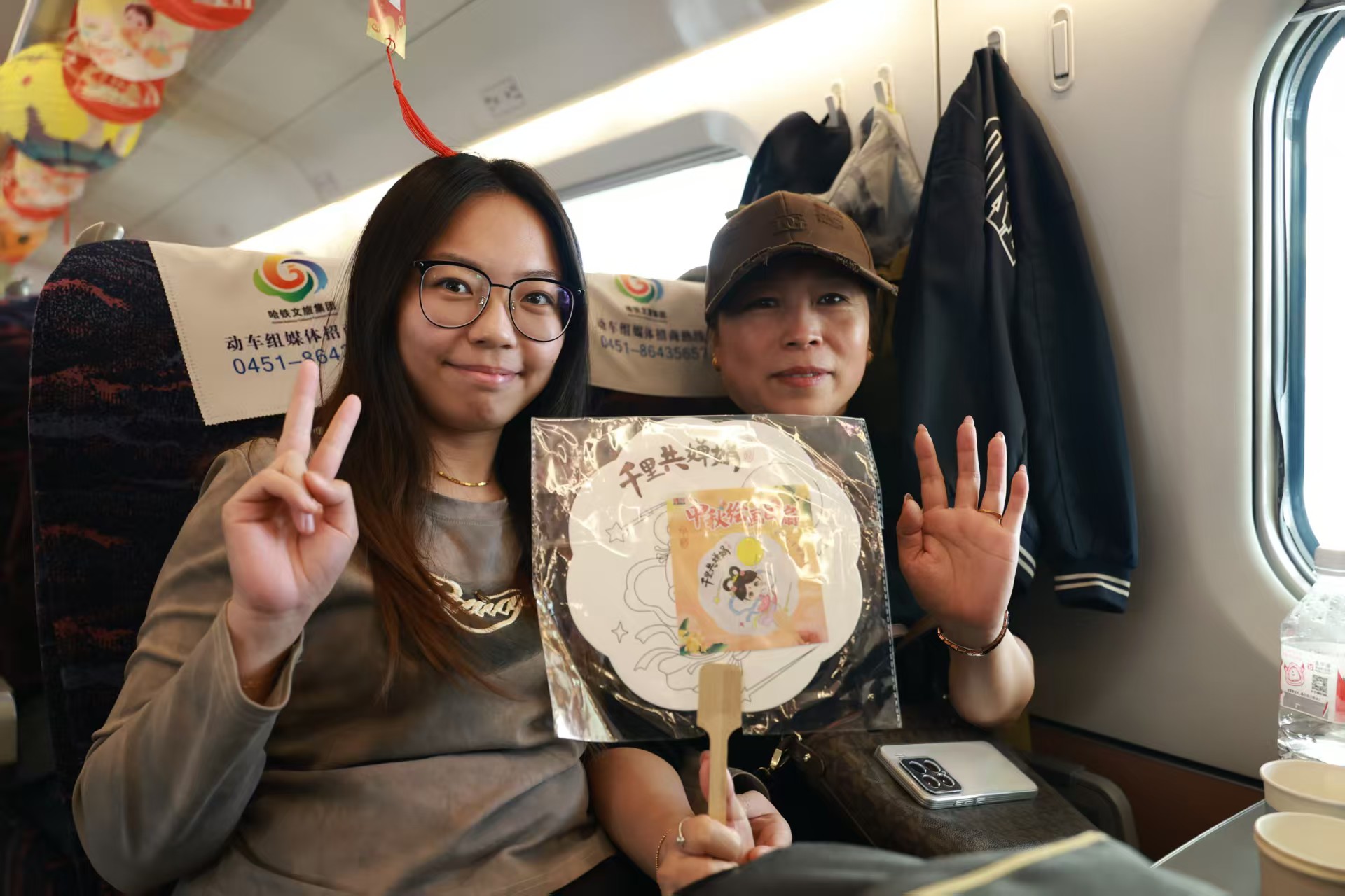 “这个月饼是豆沙馅儿的,我还收获了冰箱贴呢!太幸福了!”“我要把这个自己做的彩绘灯笼带回去送给姥姥!”10月5日13时56分,在齐齐哈尔南开往通化的D552次列车上,列车工作人员提前用代表中秋元素的月亮灯、彩带、灯笼将7号车厢装扮一新,与旅客共同开展“月满千里·情暖车厢”主题活动,庆祝中秋佳节的到来。