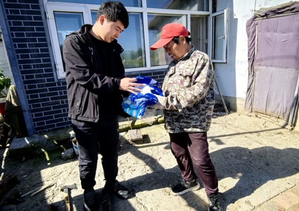 此前,驻村工作队在日常走访中发现,秋收期间村民频繁接触农作物秸秆与农具,手部易受磨损,尤其老年村民普遍缺乏专业用品。针对这一情况,工作队迅速采购一批防滑耐磨的劳保手套,逐户上门发放。在村民庭院内,队员们不仅将手套送到村民手中,还现场叮嘱老人劳作时注意劳逸结合,遇重活可及时联系工作队。