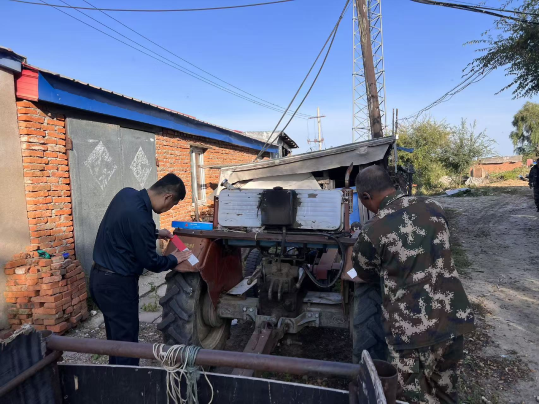 乡土人才“扎根助力”,筑牢秋收安全防线。在人才引领下,掌握安全知识的乡土人才化身“安全宣传员”,通过田间宣讲、实操示范,指导农户规范农机操作、检查电路设备,排查整改安全隐患;同时主动参与“农机反光条亮尾行动”,帮助农户粘贴反光条,夜间作业事故发生率降至零。