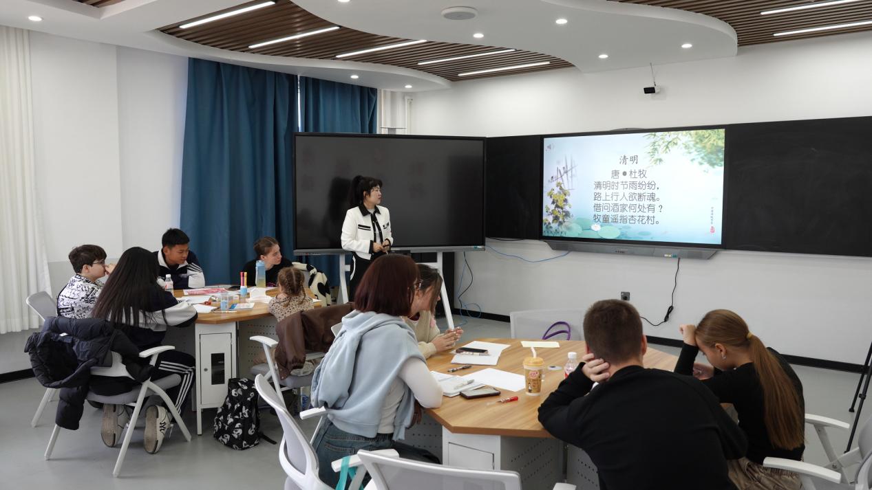 走进同江市职业技术教育中心学校的教室,来自俄罗斯犹太自治州比罗比詹市的10名学生正跟着中国老师逐字逐句地品读唐诗《清明》,眼神里满是对中国文化的好奇与热爱。俄罗斯学生们一边跟着老师朗读,一边在纸上书写汉字,那略显生疏却无比认真的笔触,在纸张上勾勒出一笔一画,仿佛是在描绘着他们心中对中国文化的向往。