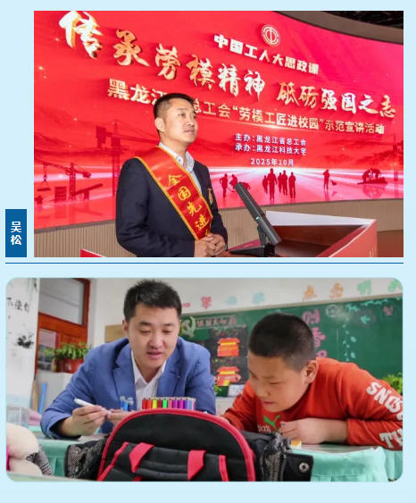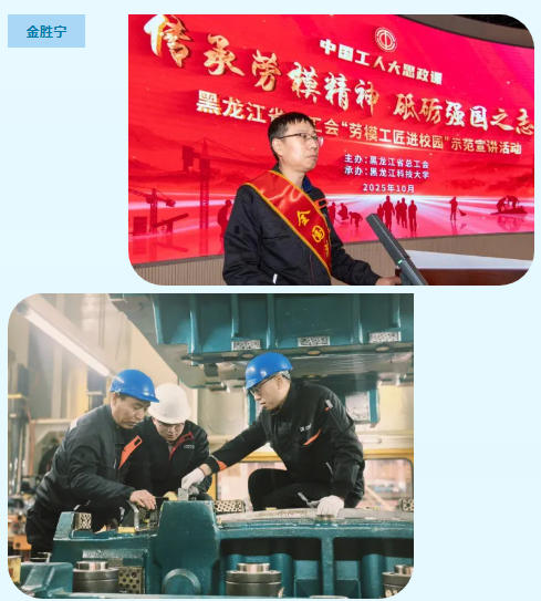 全国劳动模范、全国五一劳动奖章获得者,国家电网黑龙江电力李庆长共产党员服务队队长梅宏刚讲述他与团队如何在洪水中抢修电路时,台下有学生悄悄举起手机,记录下他“连续七天六夜奋战”的细节;全国劳动模范、云枫汽车有限公司高级技师金胜宁说起“19岁进车间,4个月成熟练工,45天吃住在车间攻关”的经历时,现场的同学眼中闪过坚定的目光;全国先进工作者、香坊区成高子镇中心校教师吴松讲到“南下千里找回失学学生,用三年温暖‘星星的孩子’”时,数学与应用数学专业的赵梓如深受感动,她说:“我的梦想,就是成为像吴松老师那样的教育工作者,把今天感受到的这份力量,继续传递给我的学生。”