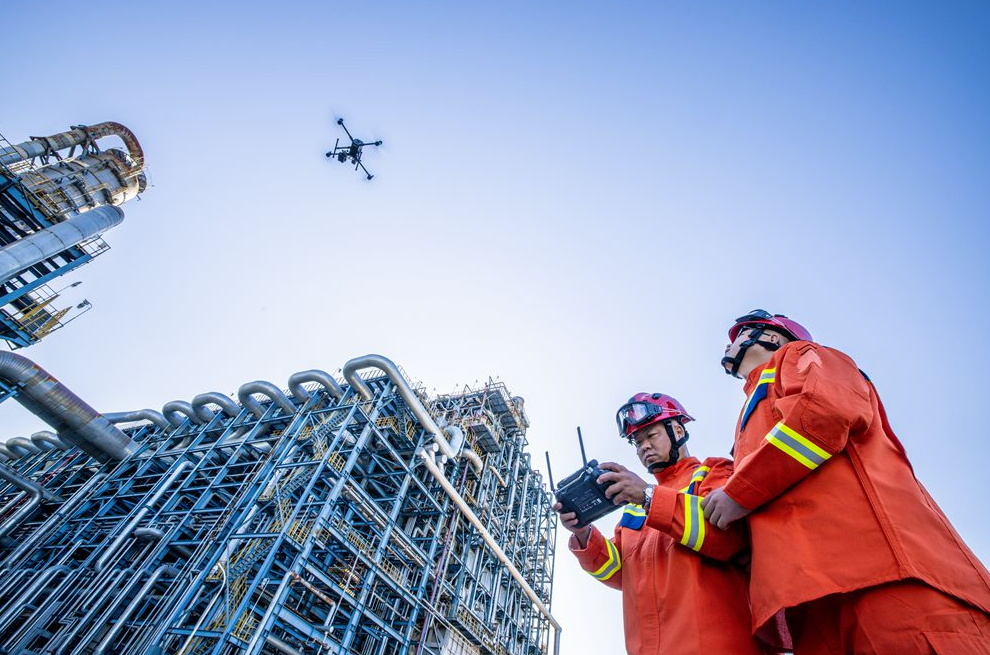 智能化装备的应用有效弥补了人力检查的局限性。化工运行二部作为试点单位,率先引入防爆机器人执行高危高压环境下的巡检任务,通过AI智能识别、红外热成像、气体检测等技术,进行自主导航、跑冒滴漏识别、泵机测温等操作,有效降低员工安全风险,填补人工巡检间隔空白。无人机的使用也在日常生产中发挥重要作用,其配备的红外及可见光双摄像头,可对装置及管输系统开展深度检查,快速探并精准定位测隐蔽问题,提升巡查效率。