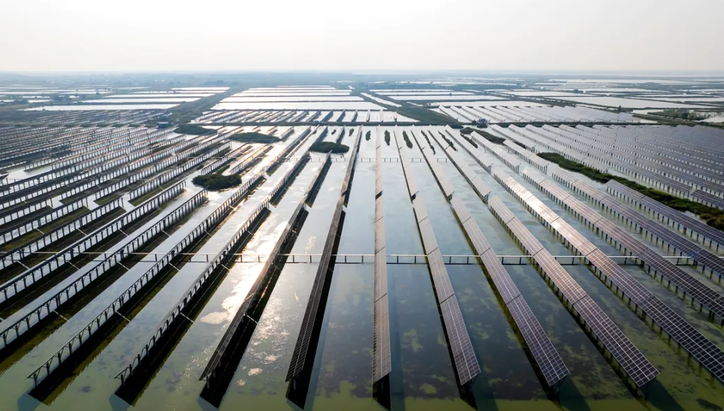 在龙凤区的一片坑塘水面上,20兆瓦水面光伏项目已成功并网发电。一块块光伏板整齐排列,板上“向阳而生”,板下“波光隐现”,构成了资源综合利用的和谐图景。