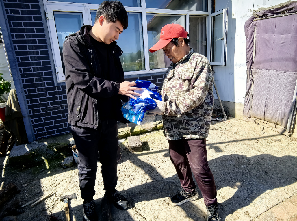 此前,驻村工作队在日常走访中发现,秋收期间村民频繁接触农作物秸秆与农具,手部易受磨损,尤其老年村民普遍缺乏专业用品。针对这一情况,工作队迅速采购一批防滑耐磨的劳保手套,逐户上门发放。在村民庭院内,队员们不仅将手套送到村民手中,还现场叮嘱老人劳作时注意劳逸结