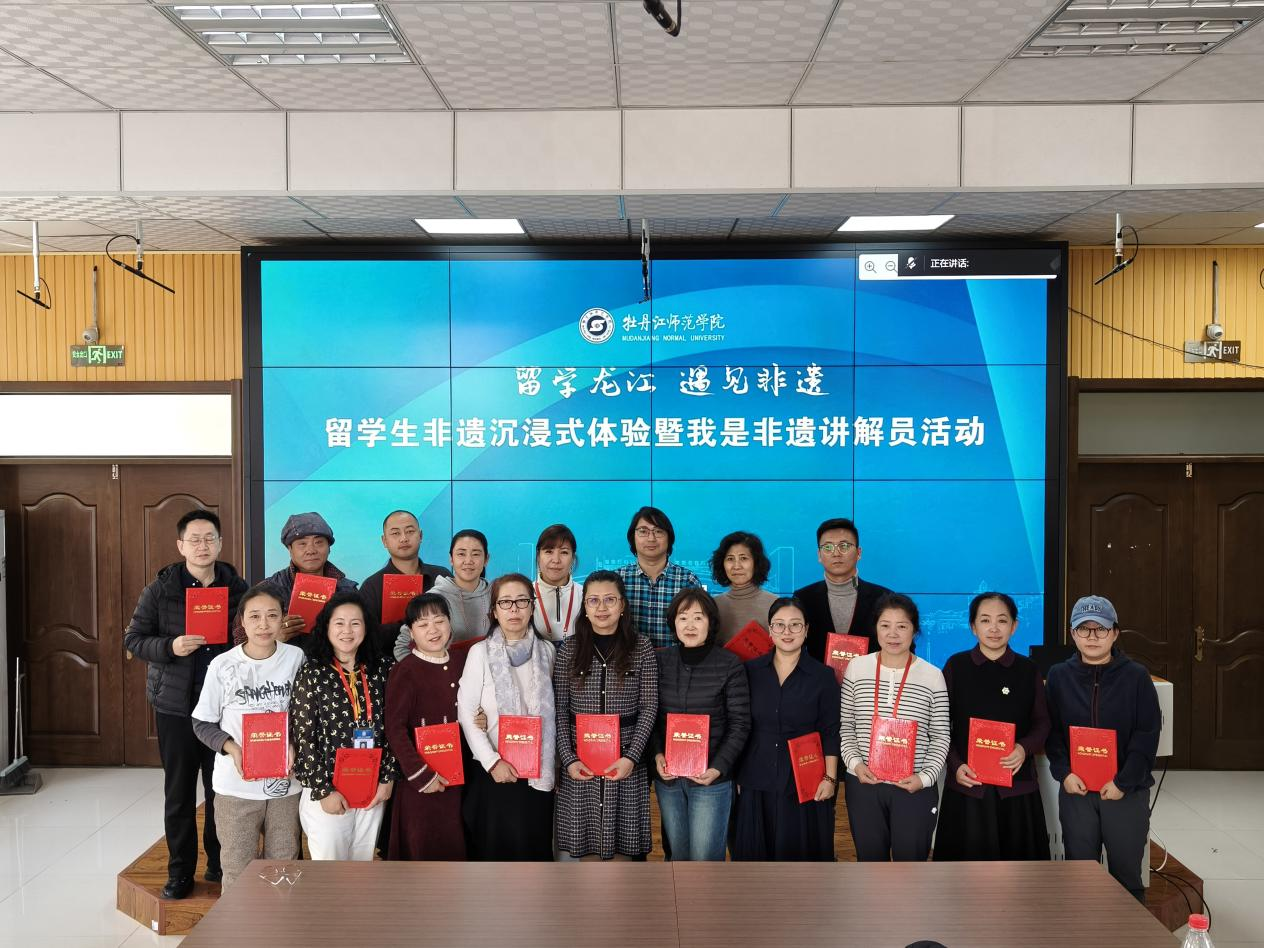 近日,牡丹江师范学院教师教育实训楼内非遗韵味流淌,一场以“留学龙江·遇见非遗”为主题的留学生非遗沉浸式体验活动隆重举行。抚远市省级非遗代表性传承人王桂荣受邀参加活动,与来自全球的留学生共赴一场跨越山海的文化交流。