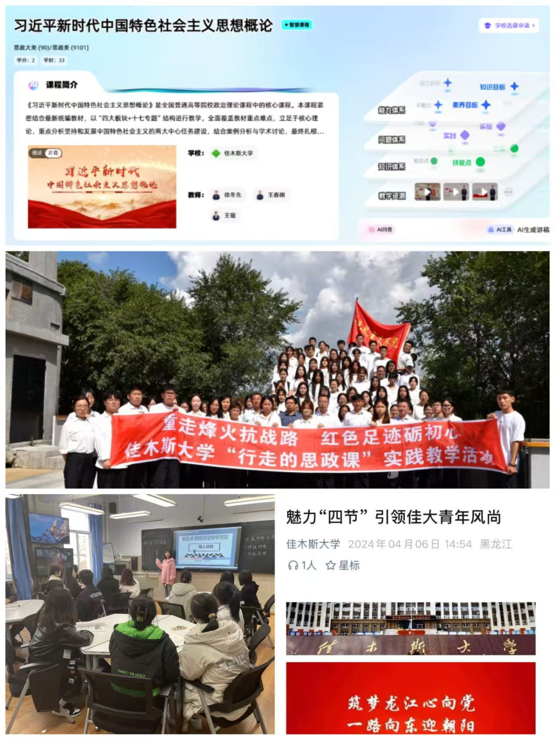 站在新的历史起点,佳木斯大学马克思主义学院将持续深化“12345”育人模式创新,不断完善协同育人机制、丰富育人内容、创新育人方法,着力打造思政教育品牌,让“大思政课”有温度、有深度、有力度,为培养担当民族复兴大任的时代新人作出新的更大贡献。
