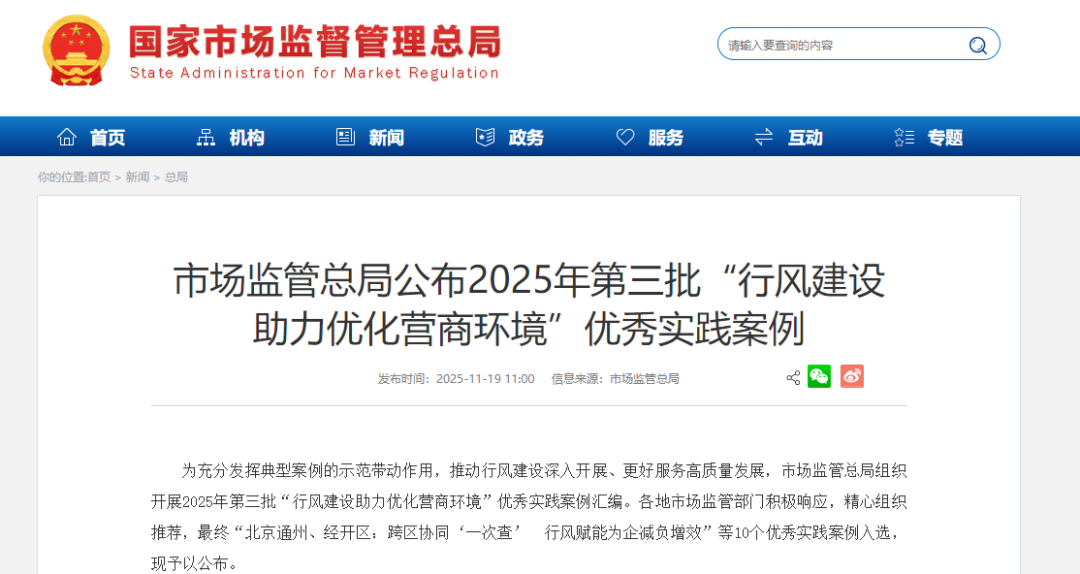 近日,国家市场监督管理总局公布2025年第三批“行风建设助力优化营商环境”优秀实践案例名单。其中,黑龙江1个案例入选。