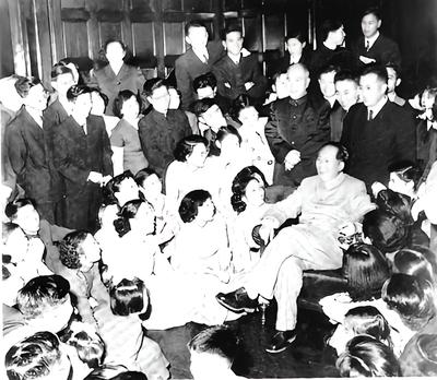 1957年11月17日,毛泽东主席在莫斯科大学大礼堂接见中国留学生