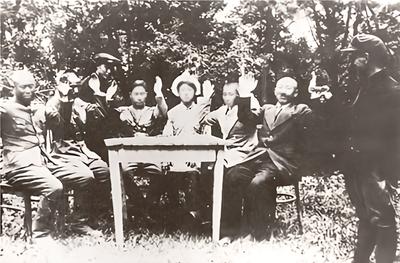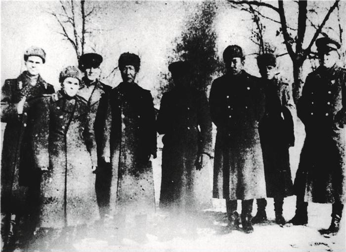 东北抗联教导旅旅长周保中(左四)、政治副旅长李兆麟(左六)与苏联远东军区军官合影