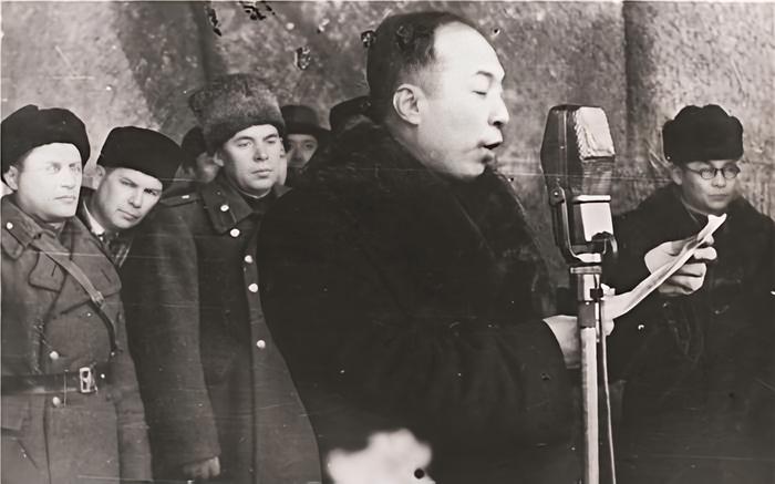 1946年,李兆麟在哈尔滨庆祝苏联红军建军节大会上讲话