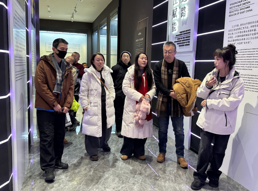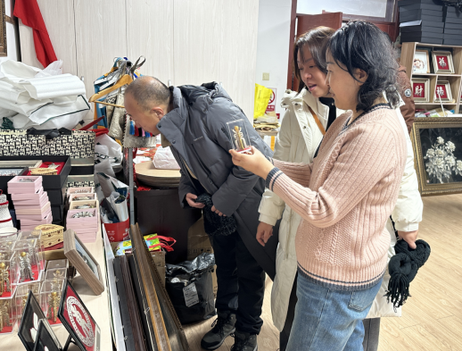 作为赫哲族鱼皮制作技艺的重要展示平台,工作室里陈列的鱼皮画、鱼皮挂件等精美作品,引得游客纷纷驻足观赏、拍照留念。大家在端详鱼皮制品精巧纹样与灵动造型的同时,聆听非遗传承人讲述作品背后的故事,沉浸式感受千年技艺的匠心与温度。