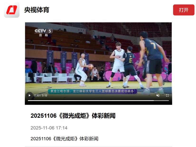 CCTV-5聚焦报道赛事盛况,镜头下高校学子斗志昂扬的模样,生动展现了青春力量与体育精神,也让龙江体彩年轻化、社会化的品牌形象深入人心,认可其在推动青年体育发展与公益普及上的重要作用。