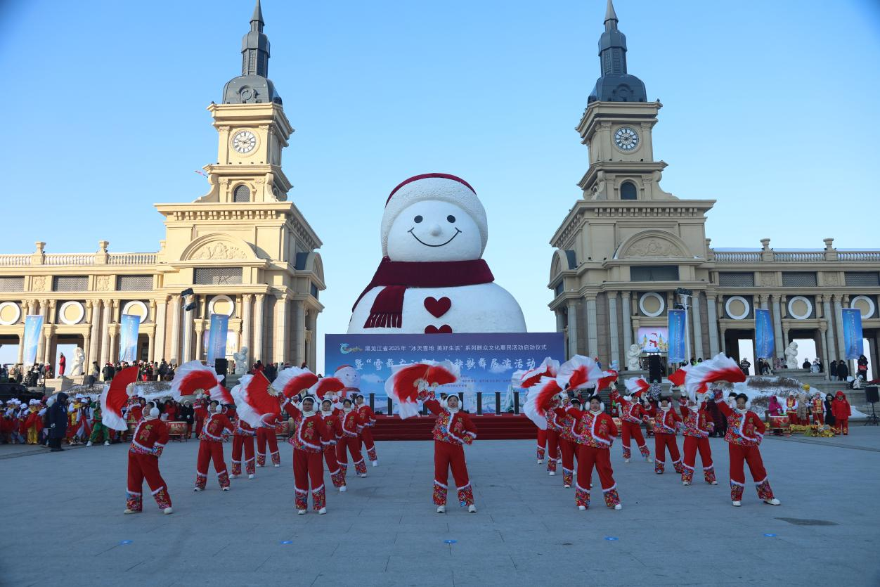 12月27日,由黑龙江省文化和旅游厅主办,黑龙江省群众艺术馆、黑龙江省图书馆、哈尔滨市文化广电和旅游局、各市(地)文化(体)广电和旅游局联合承办的“幸福满龙江”全省“冰天雪地美好生活”系列群众文化惠民活动启动仪式暨“雪舞龙江”全省秧歌舞展演在哈尔滨市群力音乐长廊广场盛大举行,以民俗之韵激活冰雪资源,为全省群众及各地游客奉上冬日精神文化盛宴。