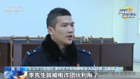 乐山市公安局五通桥区分局刑事侦查大队民警王鹏颖:就是外省的市民被电诈分子骗了之后,钱被转到了李先生的银行卡里,然后电诈团伙让李先生把钱转到其他账户。所以,李先生被电诈团伙利用了,扮演了诈骗链条中“洗钱工具人”的角色。