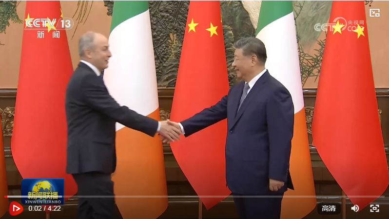 习近平指出,中国和爱尔兰都爱好和平、开放包容、自立进取,两国人民通过斗争赢得国家独立和民族解放,依靠几代人接续奋斗迈向现代化。2012年两国建立互惠战略伙伴关系以来,双边贸易额翻了两番,相互投资均衡发展,两国人民双向奔赴,助力各自国家发展。相互尊重、平等相待、互利共赢是中爱关系长期稳定发展的宝贵经验,双方要共同传承和弘扬。中方愿同爱尔兰加强战略沟通,深化政治互信,扩大务实合作,为两国人民谋福祉,为中欧关系添动力。