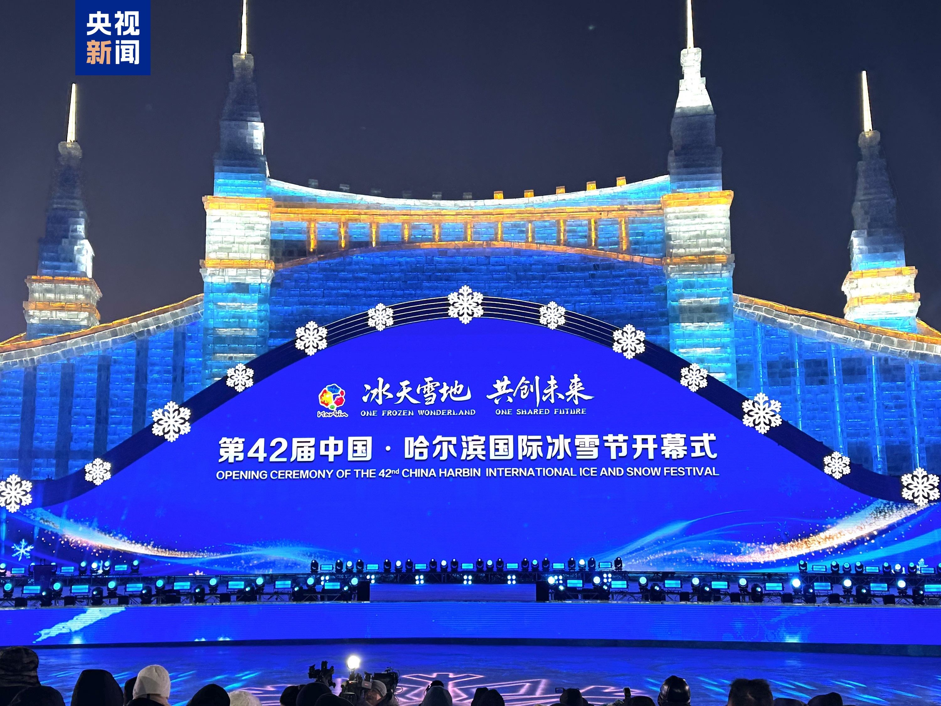 1月5日晚,第42届中国·哈尔滨国际冰雪节在哈尔滨冰雪大世界开幕。