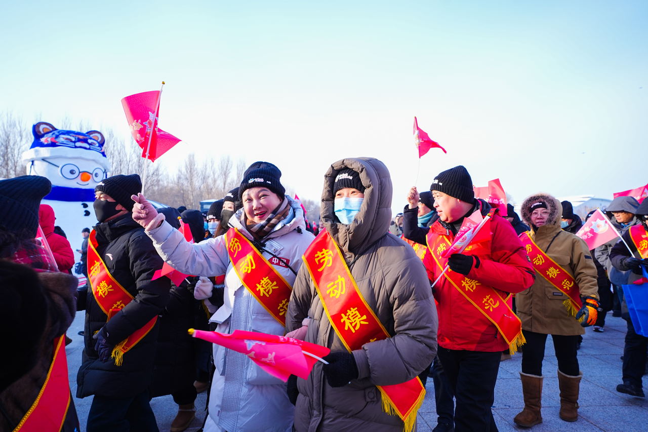 活动开始前,主席台前早已人头攒动。随着激昂的音乐响起,“冰雪飞扬”主题表演正式上演,舞者们踏着明快节奏舞动,现场氛围逐渐升温。“一、二、三,加油!加油!加油!”3000余名来自全省各市地、产业工会的职工代表的呐喊声穿透寒风。当清脆的发令枪响起,职工有序出发。